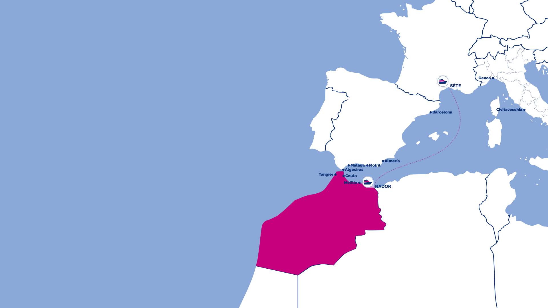 The ferry route from Sète to Nador offers travelers an exciting journey across the Mediterranean. With a travel duration of approximately 39 hours and 45 minutes, this route provides all the essential comforts for a pleasant voyage. By booking with FerryBooking24, you can enjoy a stress-free experience that guarantees the best price in real-time, easy reservation methods, and specialized customer service. For additional assistance, you can reach our team at +39 0565 960130. Features also include secure online payments and optional travel insurance.