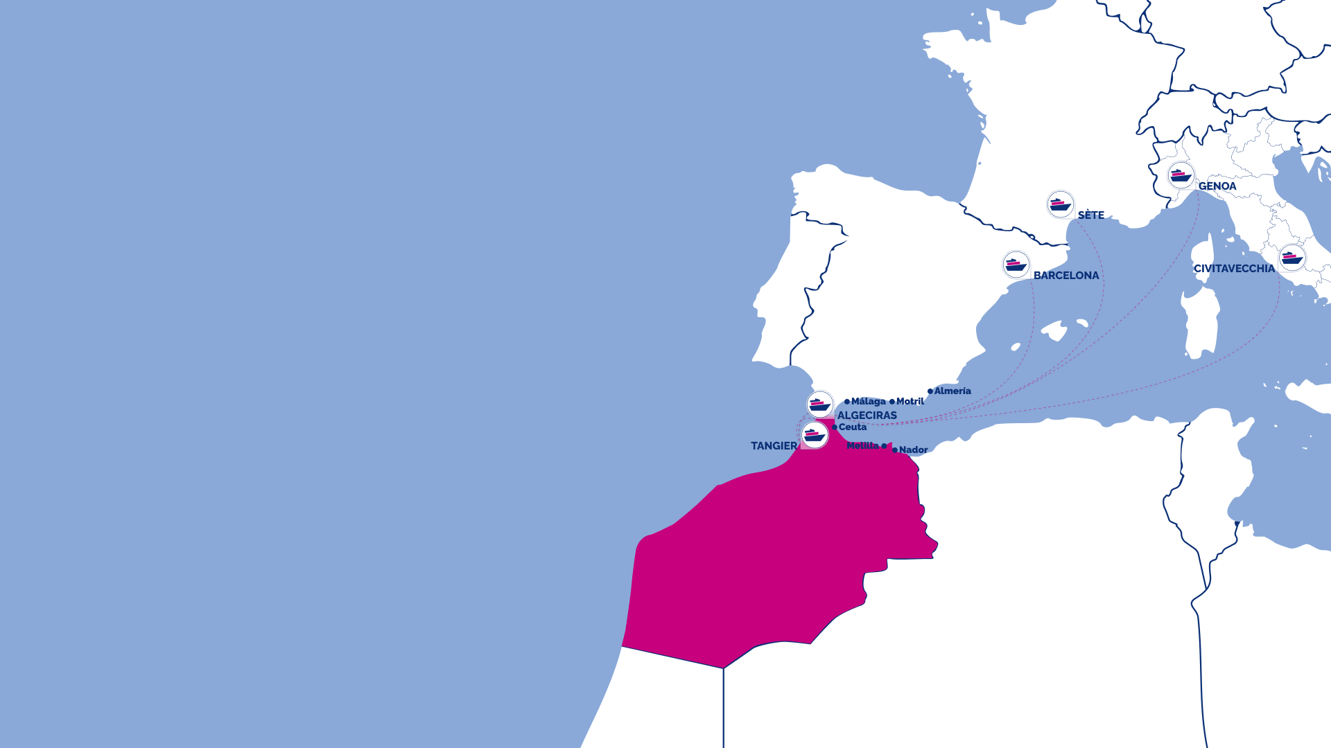 Tangeri Med is a crucial hub for ferry connections between Morocco, Italy, and Spain. It offers numerous routes managed by top ferry operators, ensuring a reliable and timely journey. Whether you’re planning a quick trip or a lengthy journey, ferry services from Tangeri Med connect you with major ports like Civitavecchia, Genova, Sète, and Barcelona. Thanks to FerryBooking24, planning your travel on one of these routes becomes seamless and efficient. Our platform is designed to help you find the best deals 24/7, with a secure booking process and comprehensive support services. Simply input your travel details, and you will be able to compare ferry schedules, ticket prices, and any available offers at a glance. For any assistance, feel free to contact us at +39 0565 960130.